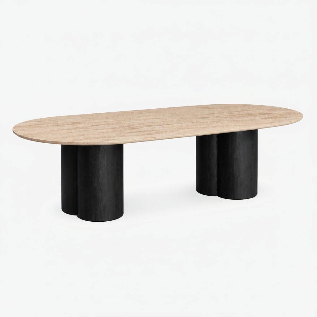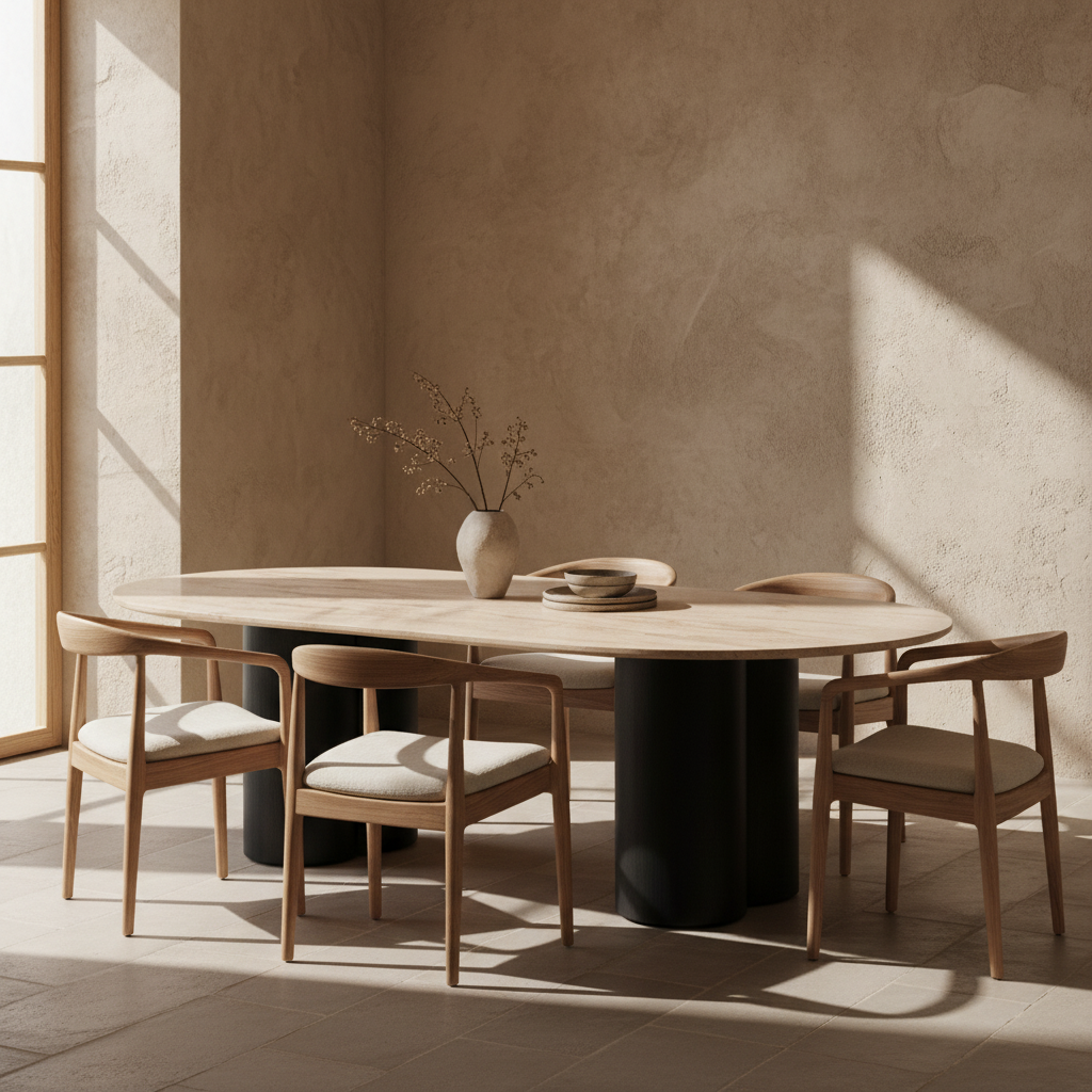 طاولة طعام أنيقة بتأثير حجر الترافرتين