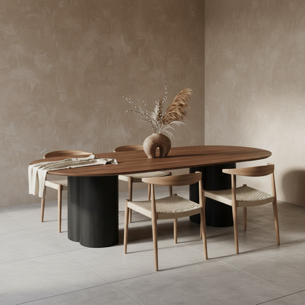 أضف لمسة من الرقي إلى غرفة طعامك مع هذه الطاولة الأنيقة ذات السطح الخشبي بلون الجوز الفاخر. تضفي درجات الجوز الدافئة والفاخرة لمسة من الأناقة الطبيعية على منزلك، بينما يضمن التصميم العصري جاذبية خالدة. صُنعت هذه الطاولة من أجود المواد وبلمسات نهائية راقية، لتكون محورًا مثاليًا للتجمعات المميزة واللحظات اليومية.