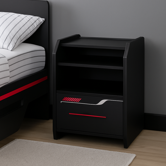 طاولة السرير ROOX السوداء MM1.38.06.U1 - طاولة سرير أنيقة وموفرة للمساحة مصممة للحفاظ على غرف الأطفال مرتبة وآمنة وسهلة الصيانة. - حجم صغير: يناسب تمامًا بجانب الأسرة، في غرف النوم الصغيرة أو الغرف المشتركة مع إضافة مساحة تخزين مفيدة بجانب السرير. - طلاء متين وآمن للأطفال: سطح أسود مقاوم للخدش...