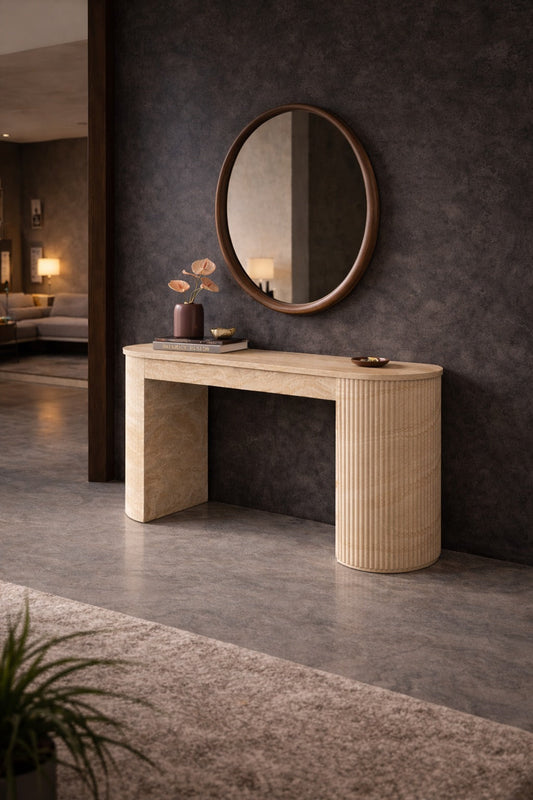 طاولة كونسول بابرو من هوم سكوير - طاولة كونسول أنيقة ورفيعة تزيد من مساحة المدخل أو غرفة المعيشة مع إضافة سطح مصقول للمفاتيح والديكورات والأغراض اليومية. - تصميم موفر للمساحة: عمق ضيق يناسب المداخل الضيقة أو الممرات أو خلف الأرائك دون أن يسبب ازدحامًا في الغرفة. - عرض وتخزين ذكي:...