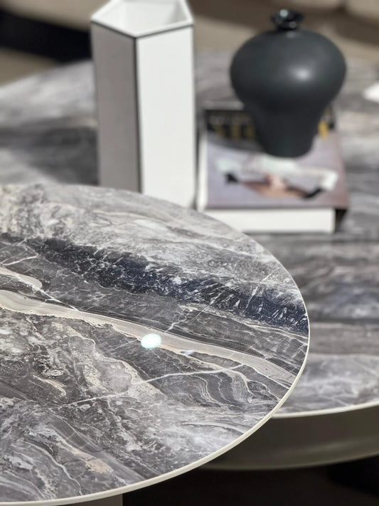 تتميز مجموعة طاولات القهوة نيرو بتصميم عصري أنيق مع أسطح رخامية فاخرة وقواعد معدنية متينة. تُعد هذه المجموعة الأنيقة مثالية للمساحات المعيشية العصرية، حيث توفر تنوعًا وفخامة لديكور منزلك.