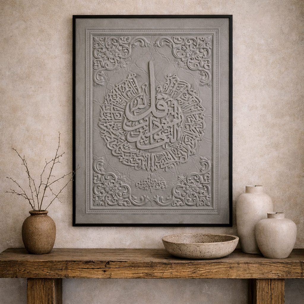 We curate Islamic art that honors tradition while embracing contemporary elegance. This Surah An-Nas piece doesn't just decorate your walls—it enriches your home with sacred verses and timeless spiritual beauty in a sophisticated modern palette.